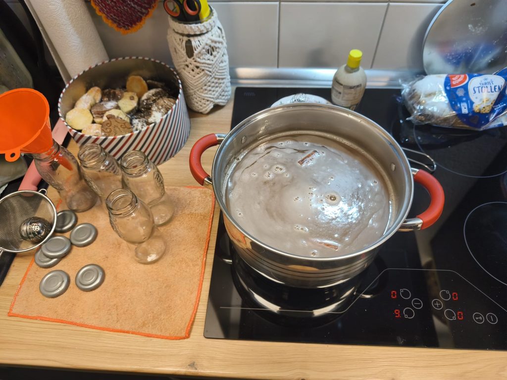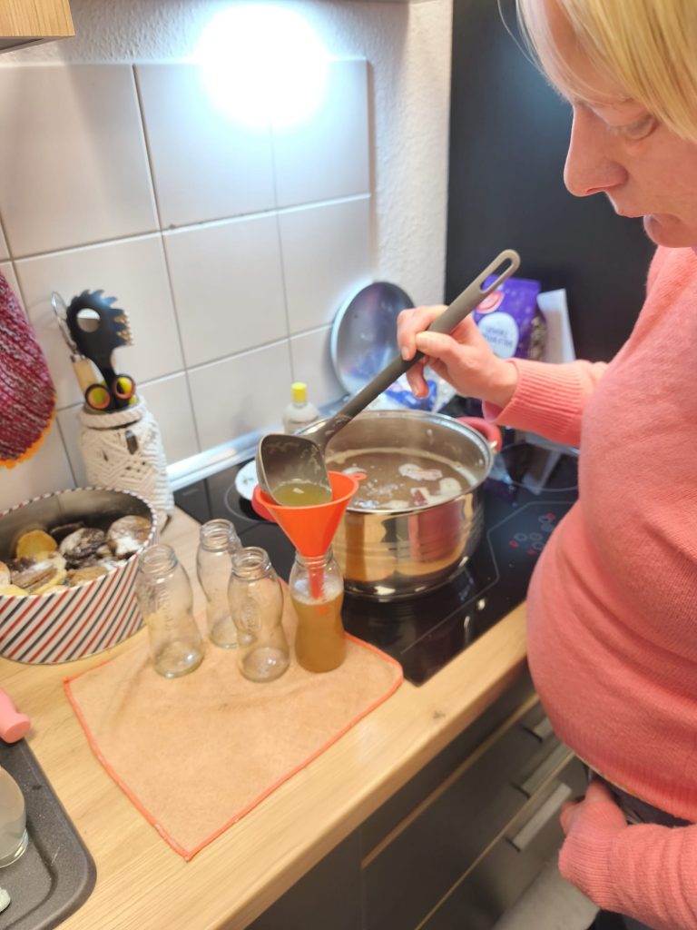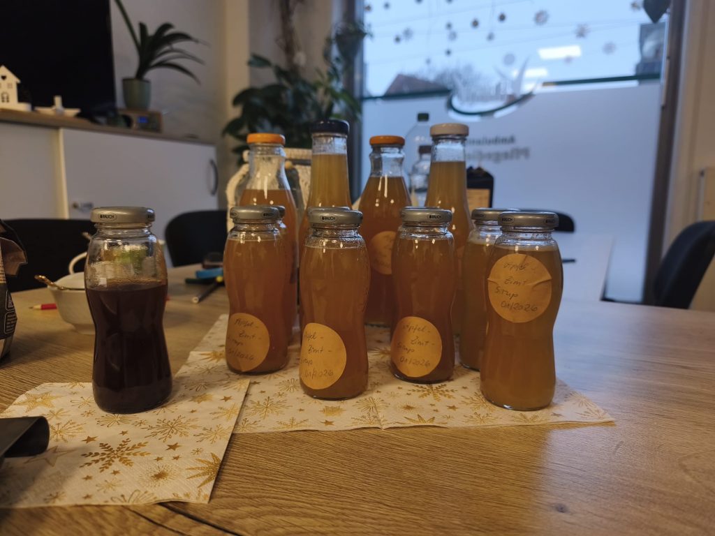 Diesen Monat wollten wir Sirup herstellen und passend zum winterlichen Wetter haben wir uns für Apfel-Zimt-Geschmack entschieden.